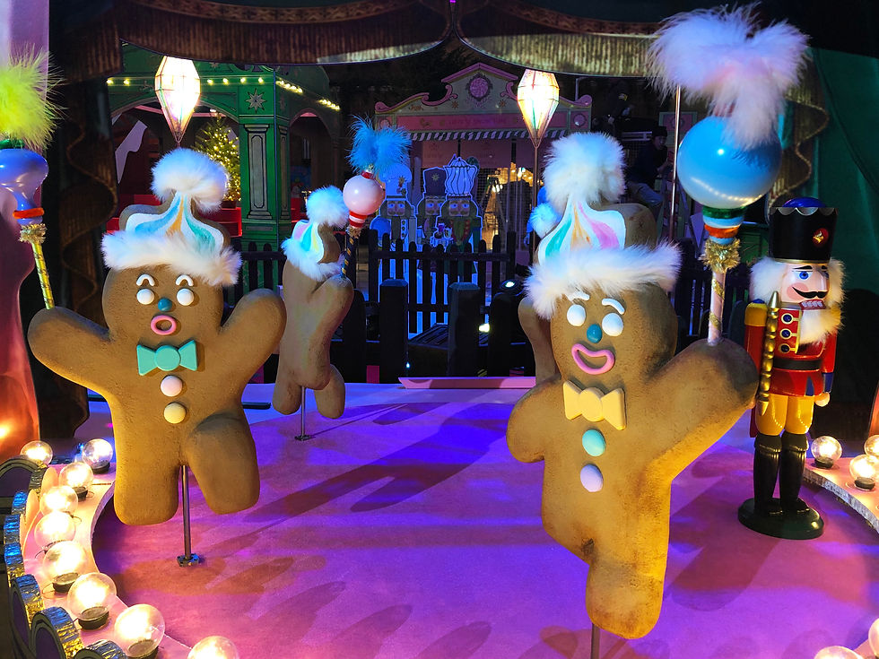 ジンジャークッキーたちがクルクルと回転しながら踊ります。
